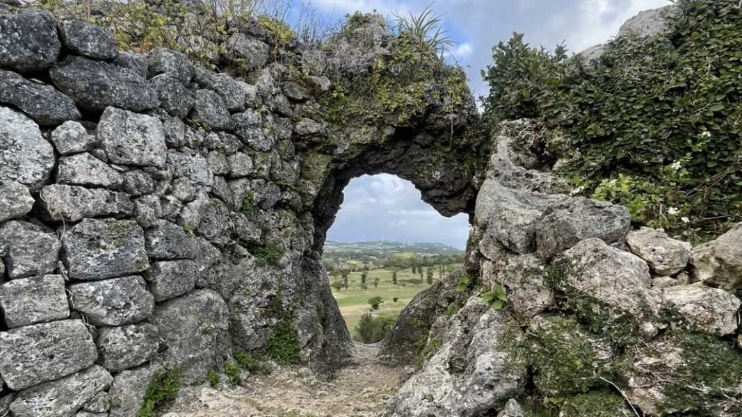 南城市にある、国に指定されている城跡で、アーチ型の城門が特徴的です。頂上からは眺めが良く、海やゴルフ場などを見ることができます。石垣や城門からは歴史を感じることができます。駐車場や城門までの木製の階段はあまり整備されておらず、歩く際は注意してください。